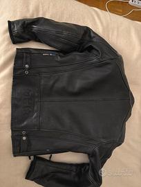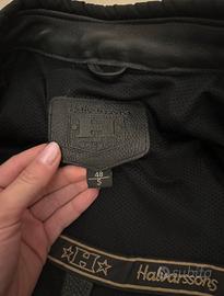 Giacca Halvarssons da uomo in pelle nera da moto, taglia 48 S, ottime condizioni usata pochissimo. Protezioni spalle gomiti e schiena (paraschiena nell’ultima foto).
