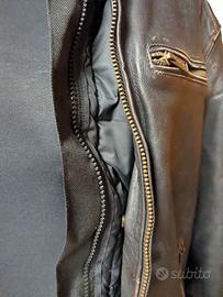 Giacca da motociclista in verapelle bovina pieno fiore, poco usat. Fodera termica interna removibile con cerniera e protezione gomiti, spalle , schiena.