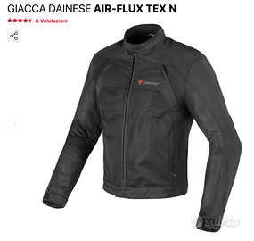 RIBASSATA. Giacca Dainese Air Flux Tex taglia 48. Usata 3 estati è in ottime condizioni; no cadute no abrasioni. Normali segni d'uso; solo le linee catarifrangenti sui gomiti sono un po' consumate. Vendo per passaggio a taglia superiore.