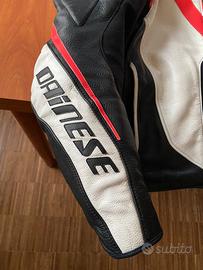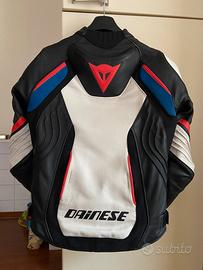 Giacca in pelle Dainese Super Speed D1 Taglia 52 Prese d’aria anteriori e posteriori Due tasche esterne Due tasche interne Tasca per paraschiena Cerniera per allacciarsi al pantalone Ottime condizioni, pulita dopo ogni uscita, lavata interno/esterno in dainese due stagioni fa Unici difetti: piastre su spalle scolorite, pelle nera su cuciture spalle leggermente consumata