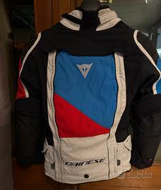 Giacca Dainese da uomo, taglia 48, con protezioni. - Colore: nero, blu, rosso e grigio. - Materiale: Gore-Tex. - Logo Dainese sul petto. - Tasche frontali.