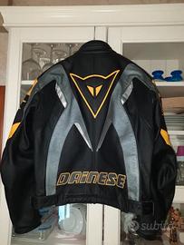 Giacca originale Dainese in vera pelle, colorazione giallo/nero/argento.