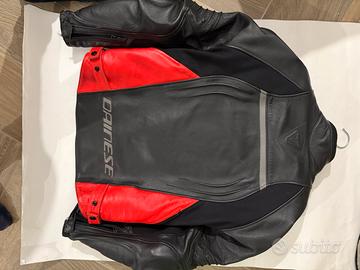 Giacca Dainese Racing 4 nero e rosso. Taglia 48, usata poche volte e vendo per inutilizzo. Sempre trattata con grasso per mantenere la pelle morbida.