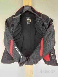 Giacca estiva in tessuto mesh marca giapponese TAICHI, modello RSJ 331, taglia L, colore come da foto. La giacca internamente incorpora protezioni semirigide per gomiti, spalle, petto e schiena, per maggiori informazioni visitare il relativo sito internet. Il capo è originale, nuovo di zecca ed in perfette condizioni, esente da difetti. La vestibilità del capo è stretta, paragonabile alla taglia M.