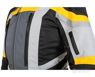 GIACCA UOMO Prezzo di listino 815euro Tg52 cod 01-510-1252-0 (2) Tg54 cod 01-510-1254-0 Tg56 cod 01-510-1256-0 Tg58 cod 01-510-1258-0 GIACCA DONNA Tg38 01-510-1238-0 Caratteristiche speciali: - Massima ventilazione grazie all'utilizzo di cerniere di ventilazione - Collegamento alla giacca esterna in laminato impermeabile, antivento e traspirante tramite cerniere nella zona anteriore. - Tasche cargo sulle cosce - Regolazione continua della vita e del torace - Passanti per cintura, inserti elasticizzati e chiusure a strappo in vita - Rinforzo in CORDURA 2000 su spalle, gomiti e orli delle gambe - Regolatore della larghezza delle braccia (azionabile con una mano) - Polsini regolabili - Colletto morbido - Distance Control (per proteggere la membrana e ridurre la sensazione di bagnato, utilizziamo questa speciale imbottitura. Ciò garantisce una buona traspirabilità e aumenta persino l'ammortizzazione.) - Protezione del serbatoio - Collegamento combinato tramite lunga cerniera di collegamento Materiale: CORDURA 500, CORDURA 2000 Dynatec Materiale riflettente nella zona delle spalle Pelle sintetica all'interno delle ginocchia Doppio strato di CORDURA 2000 su spalle, gomiti e orli delle gambe Fodera in rete (finitura antibatterica) con tessuto distanziatore per paraschiena Tasche: - 2 tasche esterne (impermeabili) - 1 tasca interna - 1 grande tasca per smartphone sull'avambraccio - 1 piccola tasca sulla parte superiore del braccio - 1 grande tasca sul retro della giacca Materiale esterno: CORDURA 100% poliammide, Dynatec 100% poliammide Fodera interna: 100% poliammide LA MERCE VIAGGIA A CARICO E RISCHIO DELL'ACQUIRENTE (CONSIGLIAMO L'ASSICURAZIONE DEL PACCO costo aggiuntivo di 5euro) E' UN NEGOZIO ON-LINE, POSSIBILITA' DI RITIRO A MANO MA SOLO PREVIO APPUNTAMENTO DA CALCOLARE spese di spedizione dai 10euro ai 30euro (in base alla dimensione o peso del ricambio) CON PAGAMENTO ANTICIPATO CON BONIFICO BANCARIO OPPURE Se in contrassegno