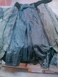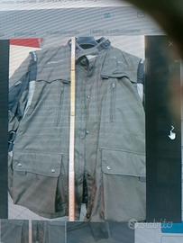 Il colore è tra il verde e il marrone con inserti neri . Le misure del guscio esterno lunghezza circa 75 cm. Larghezza spalle da cucitura a maniche 55 cm . Interno la distanza tra le cuciture sotto la scialle a 58 cm.