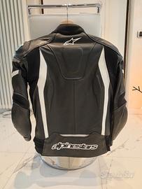 Giacca in pelle nera-bianca Alpinestars Motegi uomo taglia 48.