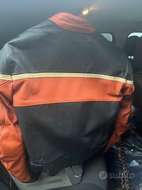 Vendo giacca in pelle da moto. Taglio dritto unisex, nero opaco, arancione e beige. Protezioni su gomiti. Con gilet interno staccabile. Ottime condizioni, pari al nuovo. Taglia S, vestibilità comoda.