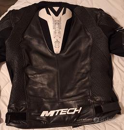 La giacca è in pelle bovina con certificazione AAA, gobba aerodinamica, maniche preformate e struttura Fitnflex con soffietti in pelle e tessuto elasticizzati.
