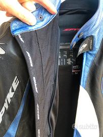 Giacca in pelle Spyke tg 54, in ottime condizioni, usata poco e sempre tenuta in armadio, mai preso pioggia, completa di protezioni su spalle e gomiti. Pelle di ottima qualità (che difficilmente si ritrova nelle giacche nuove di oggi). Tg 54, vestibilità io sono 1,86 e kg 87