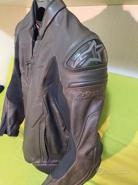 Giacca in pelle marrone scuro con inserti in tessuto tecnico nero e protezioni incorporate usata poco gilet interno rimovibile taglia 50 visibile a Bologna o Modena