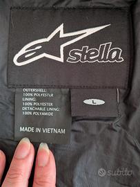 Splendida giacca nera da moto per donna della Alpinestars Stella Breeze Airflo, taglia L. Design accattivante, vestibilità sportiva e sagomata. Studiata per uso turistico, è traforata e leggera per la massima circolazione dell'aria, ideale per la stagione estiva, dispone di termofodera asportabile come da foto. Protezioni rimovibili su spalle e gomiti a norme CE. E' dotata anche di scomparti per protezioni aggiuntive sul petto e sulla schiena. La giacca presenta inoltre una cerniera in vita che permette di collegarla ai pantaloni. Perfette condizioni.