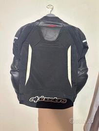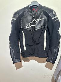 Giacca moto Alpinestars - Taglia 48 • Pelle e tessuto: mix di protezione e comfort. • Sicurezza: protezioni certificate su spalle e gomiti incluse. • Dettagli: cerniera in vita per collegamento ai pantaloni. • Stato: Buono (la pelle bianca presenta segni d'usura, vedi foto). Prezzo: 135