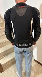 Giacca moto Alpinestars - Taglia 48 • Pelle e tessuto: mix di protezione e comfort. • Sicurezza: protezioni certificate su spalle e gomiti incluse. • Dettagli: cerniera in vita per collegamento ai pantaloni. • Stato: Buono (la pelle bianca presenta segni d'usura, vedi foto). Prezzo: 120