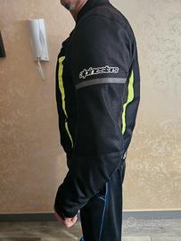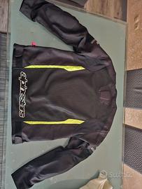 La giacca primavera/estate , usata poco, come si vede dalle foto. Progettata per una ventilazione ottimale sul petto, addome, schiena e braccia ma nello stesso tempo in piena sicurezza data dal materiale antiabrasivo e dalle protezioni sulle spalle e sui gomiti certificate e protezioni soft sulla schiena e sul petto. No affaristi, grazie