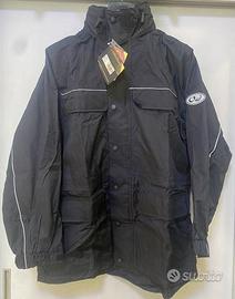 GIACCA ANTIPIOGGIA OJ TOP R002 Giacca Antipioggia Impermeabile al 100% Materiale Poliestere Spalmato cuciture termonastrate chiusura Flap a bottoni, Canale di scolo con trappola antiacqua, Fodera in Mesh, Regolazione con Strap ampiezza Polsi con Coulisse ampiezza vita ed ampiezza fondo giacca. Cappuccio a scomparsa, Aereazione Posteriore, Quattro tasche esterne , Tasca nascosta, inserti riflettenti,