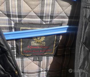 Vendo giacca moto corta cerata Belstaff originale con taschino sinistro obliquo completa di gilet imbottito antifreddo Belstaff originali (made in England), taglia L; anno 1998 circa; capi usati ma in ottime condizioni; visibili provincia nord di Varese; solo ritiro a mano.