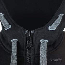 Cappuccio: può essere chiuso con un bottone a pressione nella parte posteriore per evitare intralci durante la guida