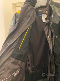 Bmw, giacca uomo/unisex, modello rallye 3, Colore grigio con inserzioni nere e gialle, taglia 56. Protezione gomiti e possibilità di levare le maniche per farla diventare un gilet. Incluso antivento rimovibile. Ottime condizioni.