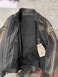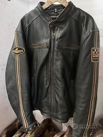 Splendida giacca moto custom HELSTONS ACE OLDIES in cuoio marrone taglia 6xl, completa di paraschiena, paraspalle e paragoniti, nonché giubbotto invernale asportabile. Usata tre volte.