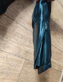 Giacca in pelle nera. Interno sfoderabile, con protezioni rigide spalle e gomiti. Nessun difetto. Taglia 48
