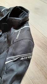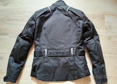 Vendo giacca moto ACERBIS da donna tg. XS col. nero, con protezioni semi-rigide su gomiti, spalle e fascia lombare. Imbottitura interna removibile, regolazioni sui fianchi e braccia, prese d'aria sul davanti . Lunghezza totale cm 70, Ascella - ascella cm 44, lunghezza manica cm 63. Il capo verra' consegnato lavato ed igienizzato.