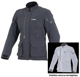 La caratteristica Night-Eye rende la giacca facilmente visibile quando colpita da luci in ambienti bui ma è di un normale colore grigio scuro alla luce del giorno.