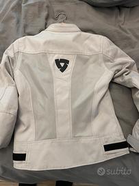Giacca da moto modello Eclipse per donna, traforata, protezioni spalle e gomiti piu’ protezjone originale revit alla schiena che puo essere spostata anche su altri capi in quanto inserita nella tasca interna alla giacca. usata per 3 o 4 uscite e poi riposta. no strappi o fori, ceriere ok.