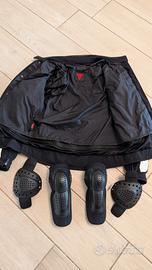 Giacca estiva traforata taglia 42 con antivento interno removibile. Protezioni spalle e gomiti anch'esse removibili. Tasca predisposta per paraschiena.