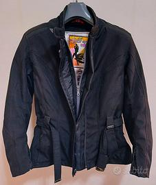 Giacca moto GIRLS OF IXS nera, mezza stagione/invernale in ottime condizioni; imbottitura interna removibile mai usata. Protezioni su spalle e gomiti, imbottitura su schiena, prese d’aria con cerniera sul torace. Misura L.
