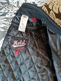 Vendo giacca moto HELD tg. L con imbottitura termica (smanicata) staccabile e con protezioni omologate spalle e gomiti. Usata 2 o 3 volte. Perfetta senza segni di usura, come nuova.