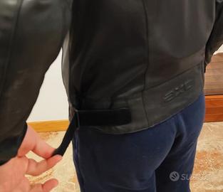 Giacca in pelle fiore morbidissima, nera. Taglia XL (52) da uomo. Fodera interna removibile con zip. Protezioni complete con paraschiena rimuovibile. Cerniera per giunzione con pantaloni. Numerose tasche interne ed esterne alle cui lampo ho legato della treccia di cuoio per facilitarne l'apertura con i guanti. Zero difetti o graffi, regolarmente mantenuta idratata. Vendo per passaggio ad abbigliamento da enduro.