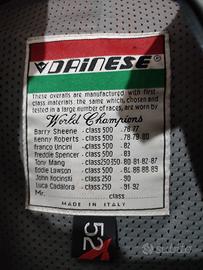 Giacca tecnica moto in pelle marca Dainese, replica Cadalora usata . taglia L in perfette condizioni, solo un po' rovinata dove scorre la cerniera. (preciso che la cerniera non ha nulla, è solo leggermente rovinata la pelle in alcuni punti sul bordo dove scorre la cerniera). premetto che non ha la tasca posteriore per inserire il paraschiena. colore: Nero, rosso e grigio antracite con protezioni su spalle, gomiti e avambraccio. Non spedisco, solo ritiro a mano in zona