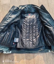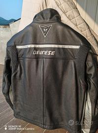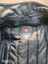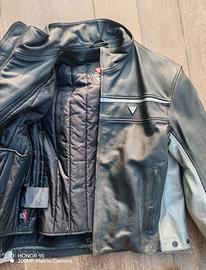Giacca moto stile granturismo in pelle marca Dainese, tinta antracite scuro con inserti sempre in pelle color argento. Imbottitura invernale interna staccabile. Misura 60. Indossata una sola volta per vendita moto