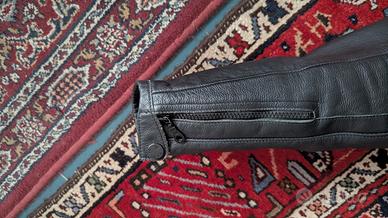 Giacca moto in pelle da uomo o donna praticamente nuova Dainese taglia S (46) usata 1 volta da mia moglie. Protezioni spalle e gomiti e imbottitura invernale removibile. Cerniera alla vita per abbonamento con eventuali pantaloni sempre da moto nel caso si voglia trasformarla in tuta. Perfetta senza un graffio o segno di usura.