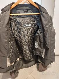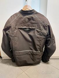 Giacca moto in cordura taglia M, 4 stagioni, stile urbano/touring. Imbottitura interna rimovibile, 2 tasche interne + 2 esterne. 7 prese d'aria apribili tramite zip (2 petto, 2 braccia, 3 schiena). Spazio protezioni rimovibili (vendute separatamente) su gomiti spalle e schiena