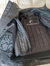 Giacca moto Bering, tag M (più o meno 50/52), ottima pelle morbida, ma resistente, completa della sua imbottitura termica, staccabile, alluminizzata all' esterno, manica con terminale in maglia. Completa delle sue protezioni su spalle e gomiti (estraibili) ed è fornita di una tasca posteriore per inserire protezione schiena. Due tasche esterne e due interne per documenti e cellulare. Collo adeguatamente coprente, polsi con cinturino e cerniera fino avambraccio. Fodera traspirante. ottime condizioni. Fornisco anche custodia per armadio. Contattarmi x sapere disponibilità