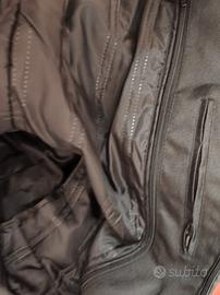 GIACCA DI PELLE TRATTAMENTO IMPERMEABILIZZANTE PROTEZIONI REMOVIBILI OMOLOGATE C.E. SU GOMITI, SPALLE, SCHIENA INSERTI IN PELLE ELASTICIZZATA PER FAVORIRE I MOVIMENTI INSERTI IN PELLE TRAFORATA PER MIGLIORARE IL DEFLUSSO DEL SUDORE IMBOTTITURA INTERNA REMOVIBILE PER L'UTILIZZO 4 STAGIONI TASCHE PORTA OGGETTI ZIP POSTERIORE DI CONGIUNZIONE AL PANTALONE ZIP + BOTTONE DI BLOCCAGGIO SUI POLSI