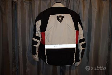 Vendo giacca moto REVIT CAYENNE PRO, usata ma in ottime condizioni, usata solo su strade asfaltate, nessun fuoristrada, nessuna caduta, nessun strappo, colore nera/grigio con interni maniche rosso, 4 stagioni completa di interno antivento/antipioggia + interno imbottito per basse temperature entrambi staccabili con cerniere, taglia XXL usata da persona alta 1,85m peso 100kg, misure giacca spalle 52 maniche 66 lunghezza 75 fianchi 60cm, protezioni rigide sulle spalle e gomiti, bande riflettenti, numerose tasche interne ed esterne, varie aperture per areazione in estate, regolazione con fasce zona addome + zona polsini e zona collo. Acquistata nel negozio Lagunaseca di Padova. Vendo causa inutilizzo. Contattare solo se interessati.