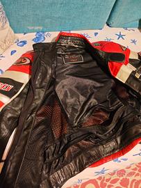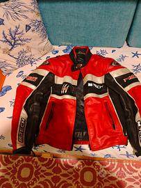 giacca moto marca m tech per uomo o donna in vera pelle taglia 48 ma veste stretta come una 46 in ottimo stato con protezioni spalle e gomiti
