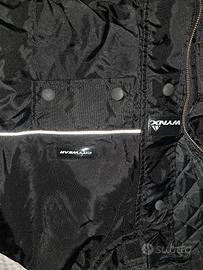 Vendo giacca moto/scooter TG M colore NERO marca WYNX CITYWEAR. La giacca è nuova, usata poche volte e tenuta sempre nell'armadio da un pò di tempo. Colore nero,bande catarinfrangenti sulla parte frontale, posteriore e sulle braccia. Chiusura con cerniera lampo, bottoni, strappo a velcro regolabile nella zona del collo e infine nella zona lombare cintura agganciabile e regolabile.
