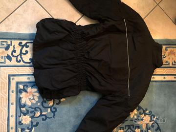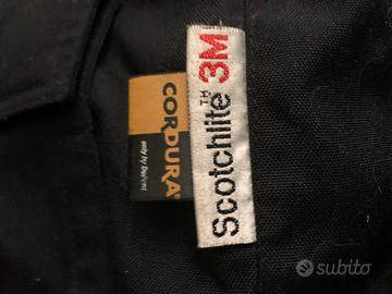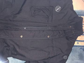 Giacca Moto completamente Sfoderabile in "CORDURA/SCOTCHLITE 3M", con protezioni in gomma rimovibili per Schiena, Spalle, Gomiti/Avanbracci. Taglia "L". Colore Nero. 5 grandi tasche frontali (4 a livello vita e 1 a livello petto) con chiusura velcro a strappo + 1 tasca cellulare con chiusura velcro a strappo a livello petto. Polsini regolabili su 2 posizioni tramite bottoni automatici. Cintura in vita con fibbia robusta in metallo. Cintura elasticizzata in vita sul dorso. Chiusura Lampo frontale "YYK". Lembi/Labbra sovrapponibili (con chiusura a bottoni automatici) a protezione chiusura lampo frontale; All'interno del lembo sx a livello petto, ulteriore tasca con zip. Colletto rivestito in velluto con chiusura velcro a strappo. Ottima condizione, usata pochissimo (2/3 volte).