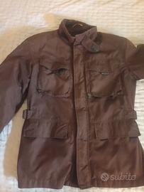 giacca moto XXL 4 stagioni , sfoderabile e dotata di protezioni spalle e gomiti tinta unita marrone scuro usata , la giacca viene spedita lavata e sanificata da laboratorio professionale