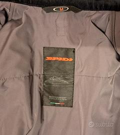 Giacca Spidi H2out per moto/ scooter taglia M, adatta a tutte le stagioni. Tessuto impermeabile, antivento e traspirante, con fodera imbottita staccabile. Numerose tasche sono collocate sia nella fodera in rete che nella fodera staccabile. Ha protezioni rimovibili su spalle e gomiti ed è predisposta per inserimento protezione schiena. Nelle giornate più calde l'utilizzo della giacca senza la fodera garantisce un'areazione elevata grazie anche a pannelli a rete sul torace, sulle braccia e dietro la schiena.