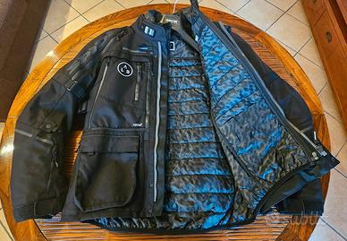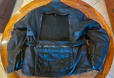 PARI AL NUOVO VENDO PER TAGLIA ERRATA Fodera H2Out laminata 3 strati removibile Predisposizione per strato intermedio opzionale Thermo Vest L70 Predisposizione per fodera H2Out opzionale X47 uomo Predisposizione per strato intermedio opzionale Rain Hoodie X98 Predisposizione per strato intermedio opzionale Thermo Rain Chest X100 Giacca isolante MAX LINER Plus opzionale L63 uomo Aggancio moschettone Compatibile con prodotti Step-In Wear Tasca esterna impermeabile Cerniera impermeabile Aperture Cerniera per unire giacca/pantalone Predisposizione per Hydroback bag touring V63 3 giacche in 1: strato esterno, membrana H2Out e fodera trapuntata Peso medio 3,0 Kg Compatibile e sovrapponibile 3 in 1 InsideOut: membrana impermeabile H2Out utilizzabile all'interno e all'esterno dei capi SPIDI Pannelli ventilati richiudibili Sistema di fissaggio e fissaggio al collo per uso estivo Chiusura vita regolabile Cinghie per regolare e fissare CE protezioni Stringaggio regolabile con coulisse Sistema di regolazione integrato ERGOFIT SYSTEM Regolazione e chiusura EST Tessuto in poliammide tenax ad alta tenacità, estrema resistenza all'abrasione Tessuto in poliestere ad alta tenacità Zone reflex per la guida notturna Tessuto in rete traforata Tessuto laminato traspirante, impermeabile e antivento a 3 strati 3M® Scotchlite® - il miglior materiale riflettente Tessuto in poliammide ad alta tenacità Cordura® Nylon 6.6 flex tenax elastico ad alta tenacità, estrema resis