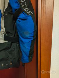 Giacca impermeabile taglia M, con protezioni spalle schiena e gomiti, chiusure funzionanti qualche segno di abrasione, cedo per non utilizzo.