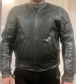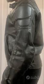 Giacca moto in pelle tg L con protezioni spalle, gomiti e schiena,con piumino interno, usata poco come nuova.