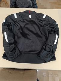 giacca traforata in buonissime condizioni, non presenta strappi, completa di protezioni spalle e gomiti, lavata e igenizzata.