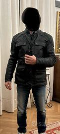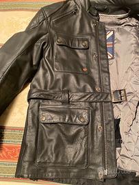 Giacca in pelle pagata intorno alle 500 euro e usata un paio di volte marca TRIUMPH. Come nuova. Per uso invernale e metà stagione. Taglia M 48/50. Protezione gomiti e spalle e tasca per protezione schiena. Cintura.
