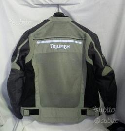 Vendesi giacca moto Triumph, tre colori (nero, grigio chiaro, grigio scuro), come nuova, completa gomitiere e paraschiena. Taglia 44/54 LARGE. No mail No spedizione
